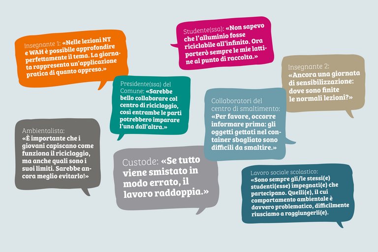 Trovi informazioni sul Campagna anti-littering o sul riciclaggio per tutta la scuola sul seguente sito Web. Se non riesci a reperire ciò che cerchi, il/la tuo(a) insegnante potrà fornirti ulteriori informazioni: